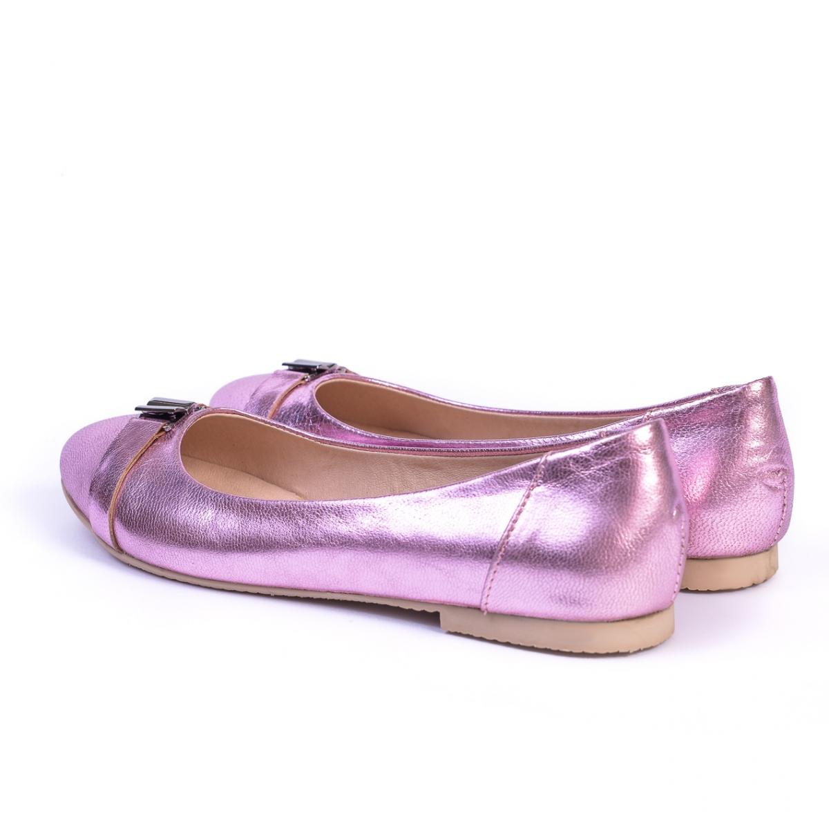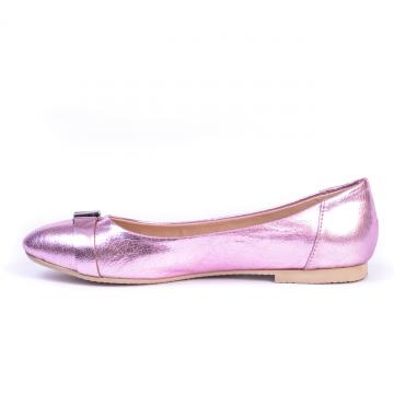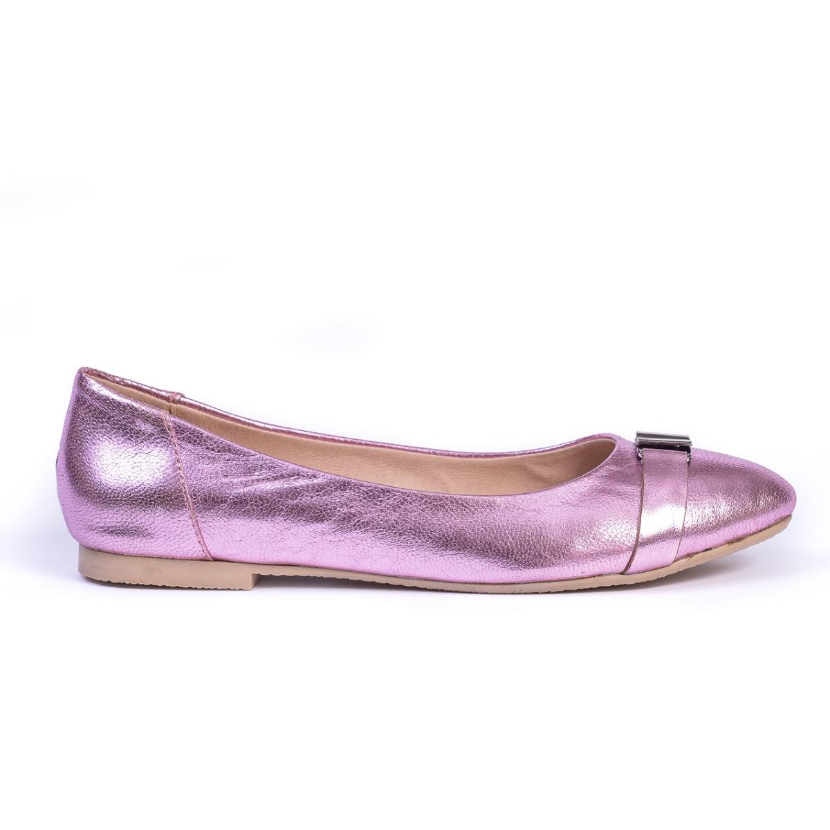 Balerini flexibili, din piele naturală roz metalizat, cu accesoriu metalic, vârf ascuțit, ce pot fi purtați împreună cu ținute casual, office, dar nu numai.