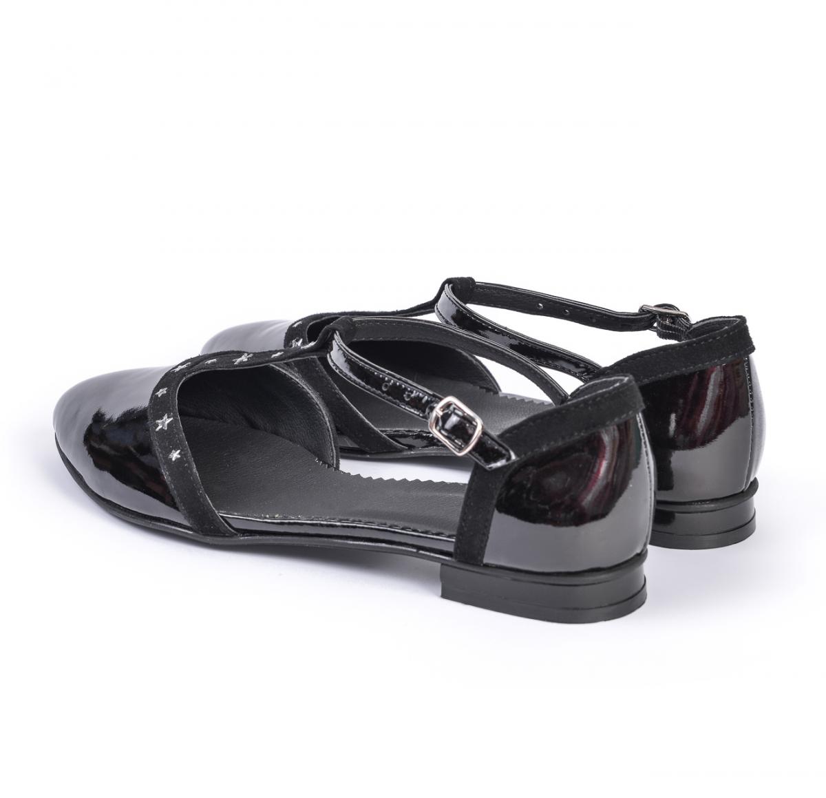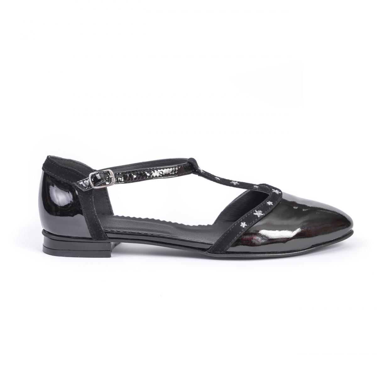 Balerini foarte comozi, flexibili și confortabili, din piele naturală lăcuită și piele naturală velur, cu accesorii tip steluțe, ce pot fi purtați împreună cu ținute casual, office, dar nu numai.