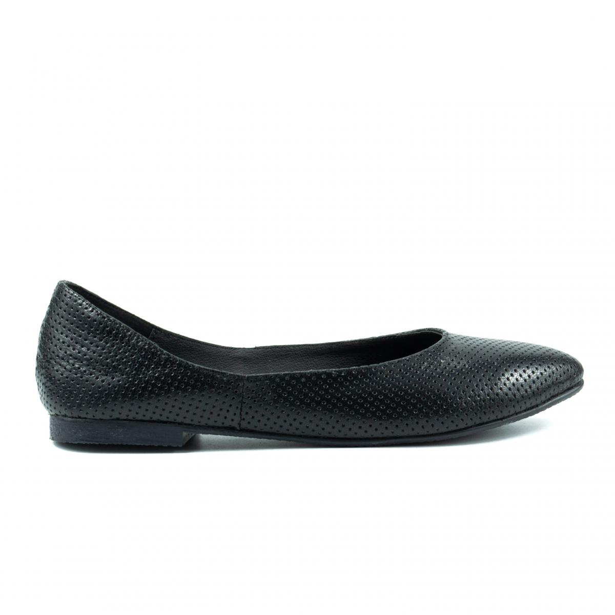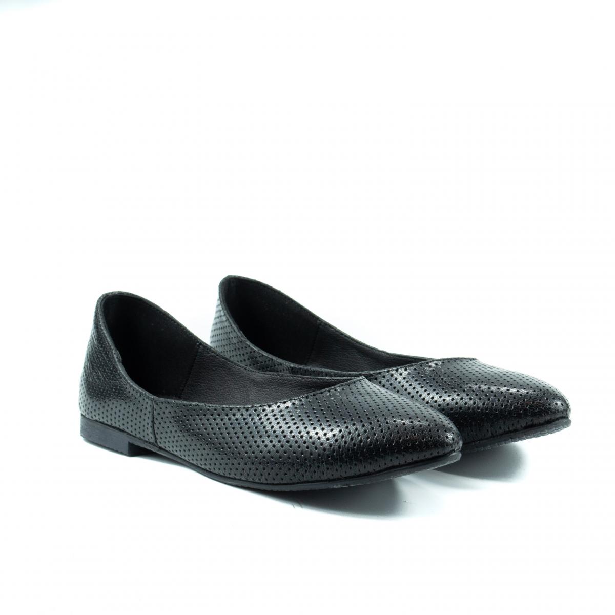 Balerini din piele naturala neagra, cu perforatii, foarte usori, flexibili si confortabili, ce pot fi purtati impreuna cu tinute casual, office, dar nu numai.