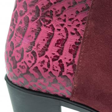 Botine clasice si elegante, realizate din piele naturală moale tip velur, combinată cu piele din imitație șarpe, ce pot fi purtate la ținute clasice, office, smart-casual, dar nu numai.