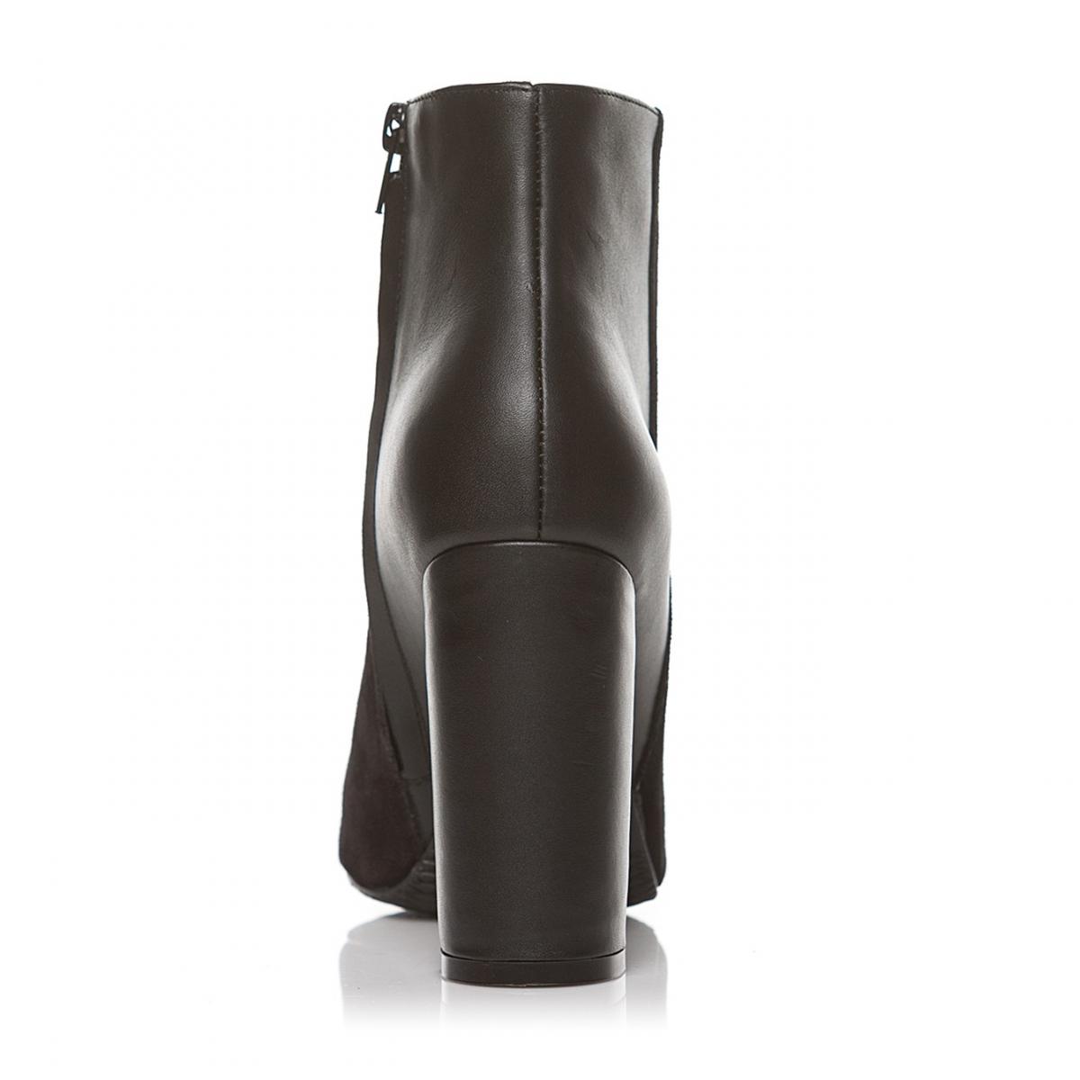 Botine clasice și elegante, realizate din piele naturală combinată cu piele naturală velur, cu toc gros, îmbrăcat, ce pot fi purtate la ținute clasice, smart-casual, office, dar nu numai.