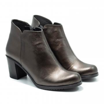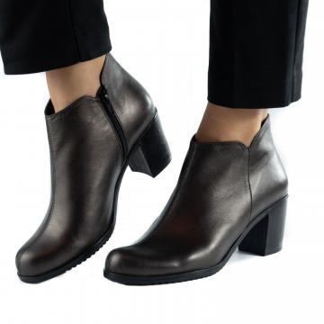 Botine clasice cu toc mediu, realizate din piele naturală cu aspect ușor strălucitor, ce pot fi purtate la ținute clasice, office, smart-casual, dar nu numai.