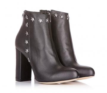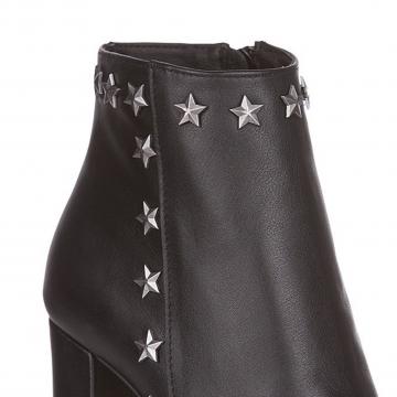 Botine clasice și elegante, realizate din piele naturală neagră, cu toc gros, îmbrăcat, ce pot fi purtate la ținute clasice, smart-casual, office, dar nu numai.