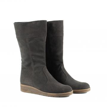 Cizme ¾ casual din piele naturala velur, cu talpa joasa, antiderapanta si captuseala calda, ideale pentru vremea rece si uscata.