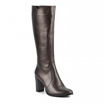 Cizme înalte din piele naturală bronz, cu toc, călduroase, ce pot fi purtate la ținute elegante, smart-casual sau office.