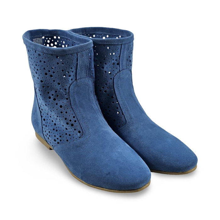 Cizme de vara perforate, realizate din piele naturala intoarsa tip velur, foarte usoare, flexibile si confortabile, cu talpa joasa, ce pot fi purtate la tinute casual, smart-casual, dar nu numai.
