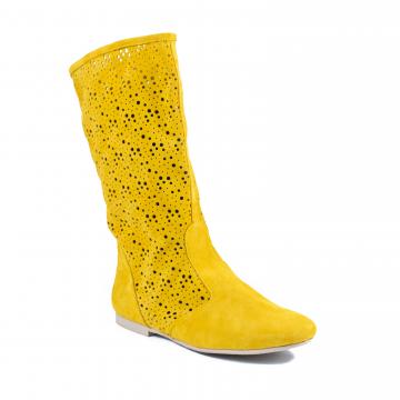 Cizme de vara perforate, realizate din piele naturala galbena, foarte usoare, flexibile si confortabile, cu talpa joasa, ce pot fi purtate la tinute casual, smart-casual, dar nu numai.
