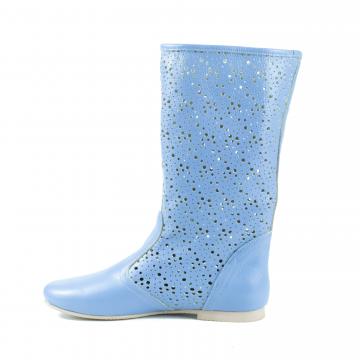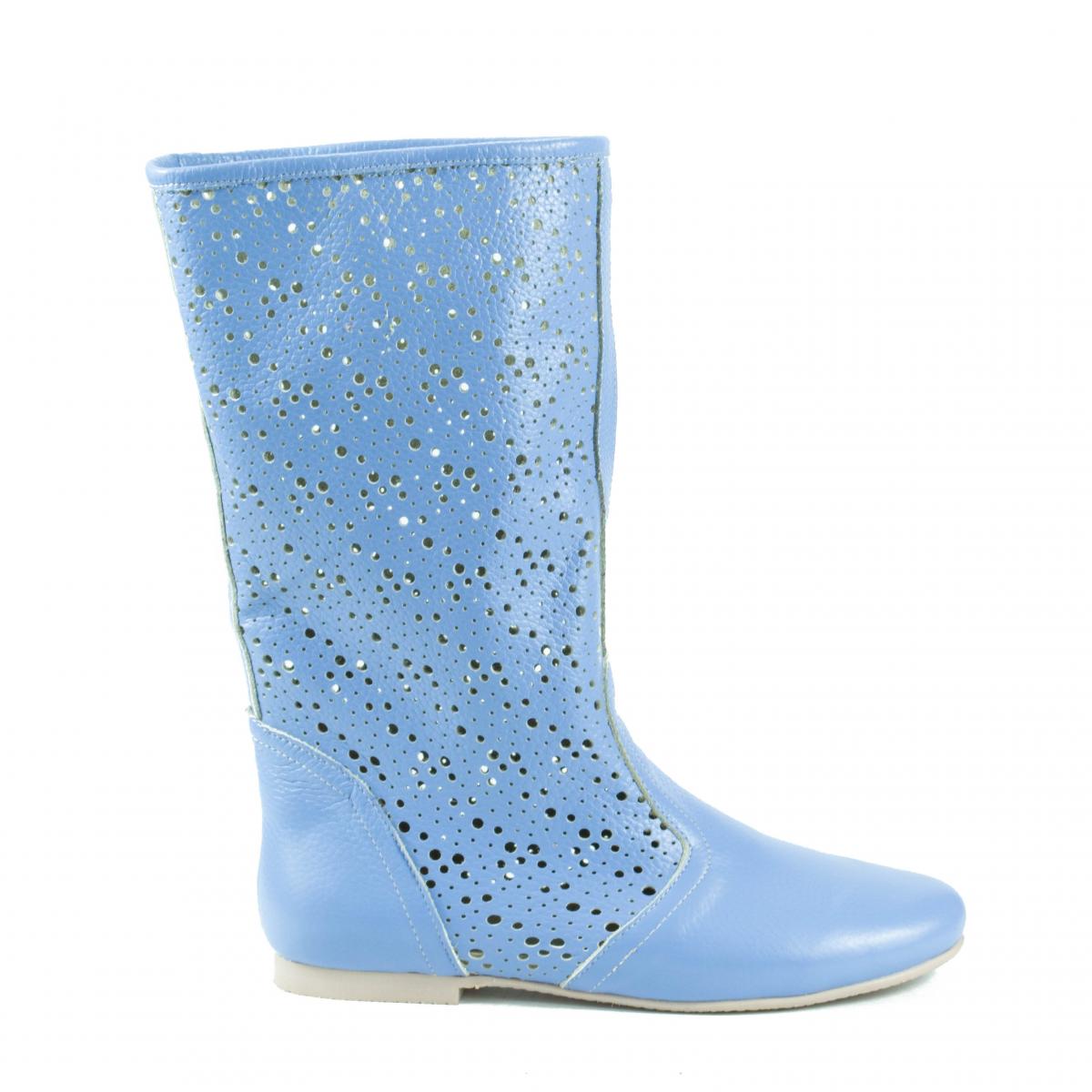 Cizme de vara perforate, realizate din piele naturala bleu - baby blue -, foarte usoare, flexibile si confortabile, cu talpa joasa, ce pot fi purtate la tinute casual, smart-casual, dar nu numai.
