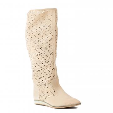 Cizme de vara inalte perforate, realizate din piele naturala velur, foarte usoare, flexibile si confortabile, cu talpa joasa, ce pot fi purtate la tinute casual, smart-casual, dar nu numai.