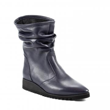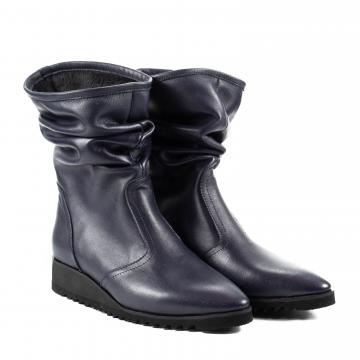 Cizme scurte din piele naturala, fronsate, fara inchidere, cu talpa joasa, ce pot fi purtate la tinute casual, smart-casual, dar nu numai.