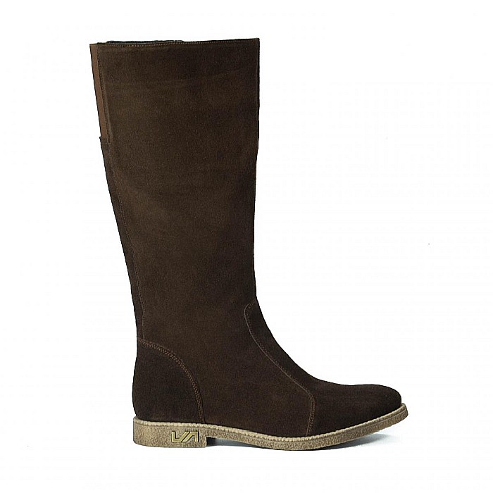 Cizme înalte din piele naturală velur, cu talpă joasă, antiderapantă și căptușeală caldă, ideale pentru vremea rece și uscată.