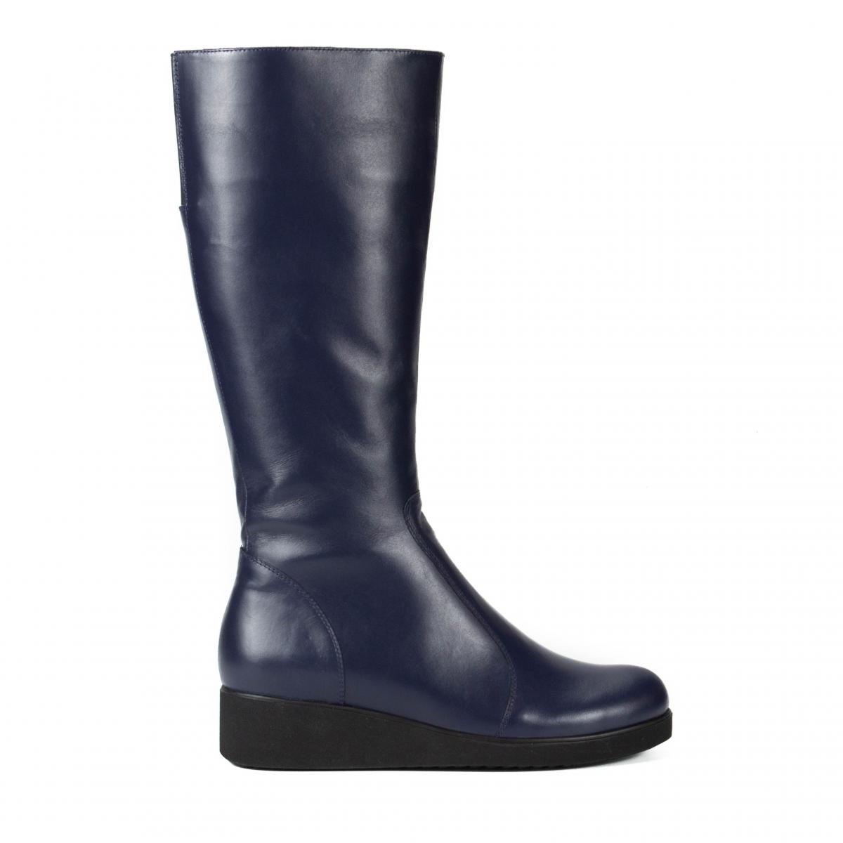 Cizme înalte din piele naturală, cu talpă joasă, comodă și căptușeală caldă, ideale pentru vremea rece.