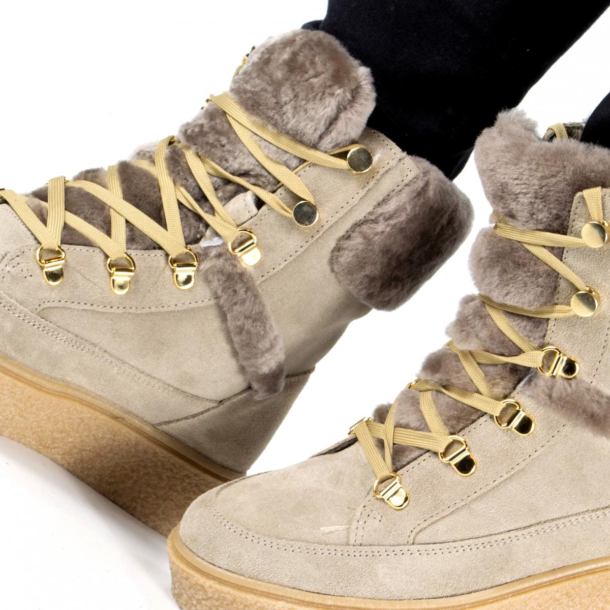 Sunt realizate dintr-o combinatie de piele intoarsa cu material sintetic, iar interiorul contine blana sintetica.
