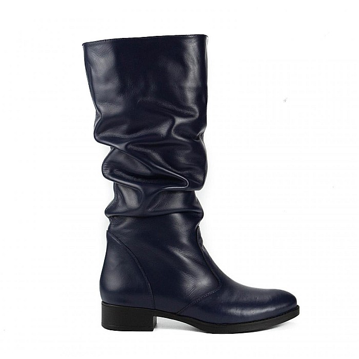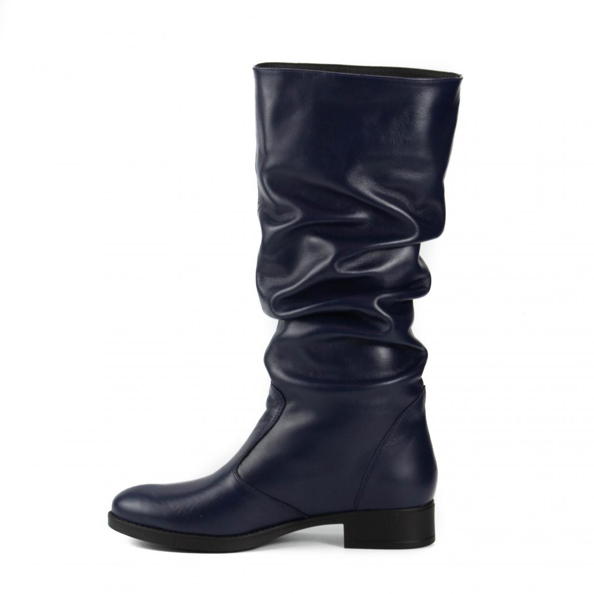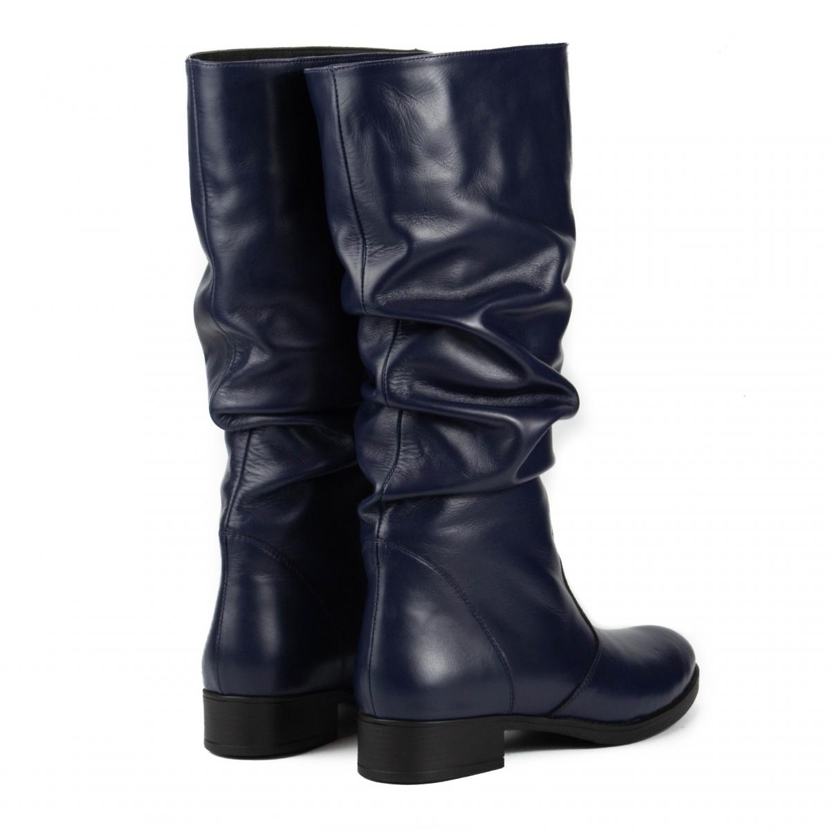 Cizme medii din piele naturală, fronsate, fără închidere, cu talpă joasă, ce pot fi purtate la ținute casual, smart-casual, dar nu numai.