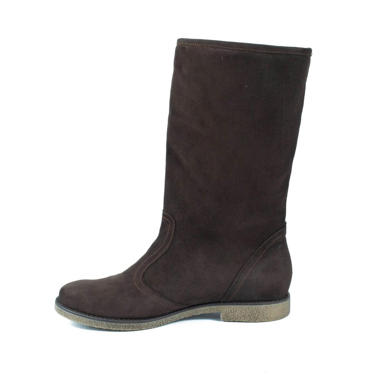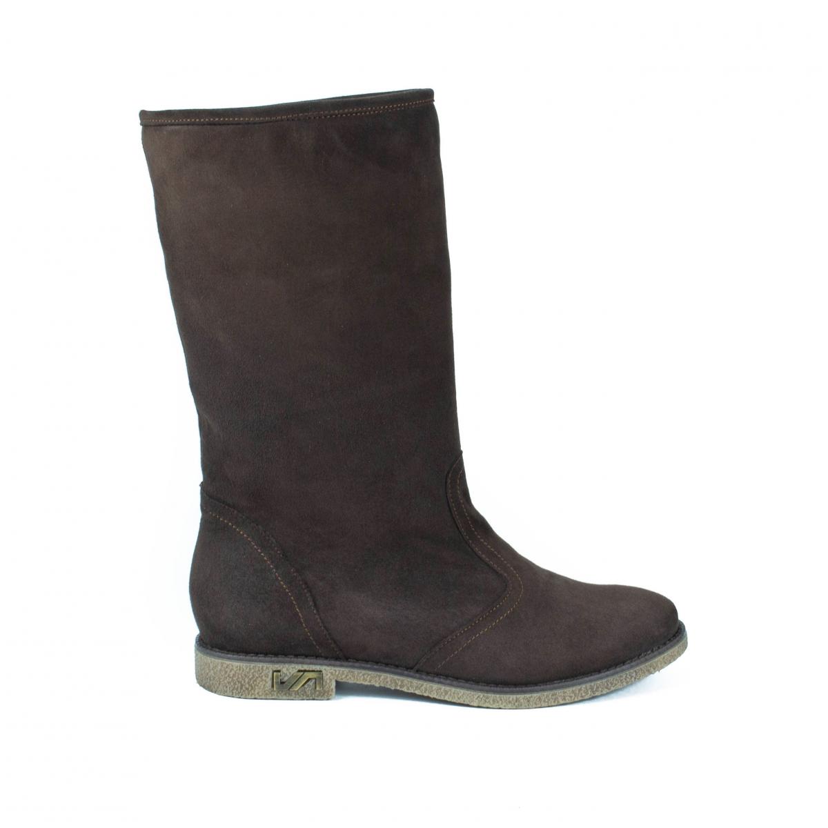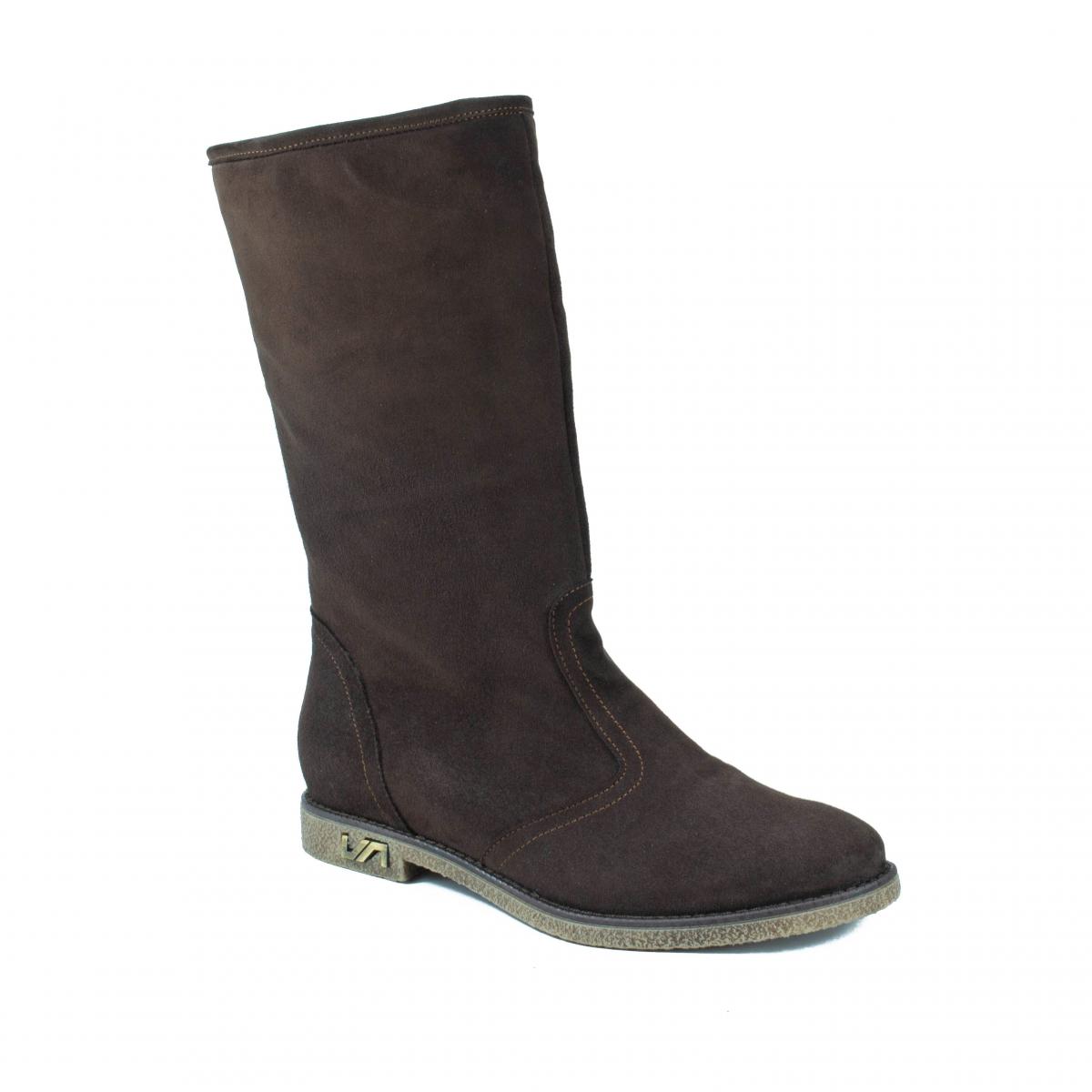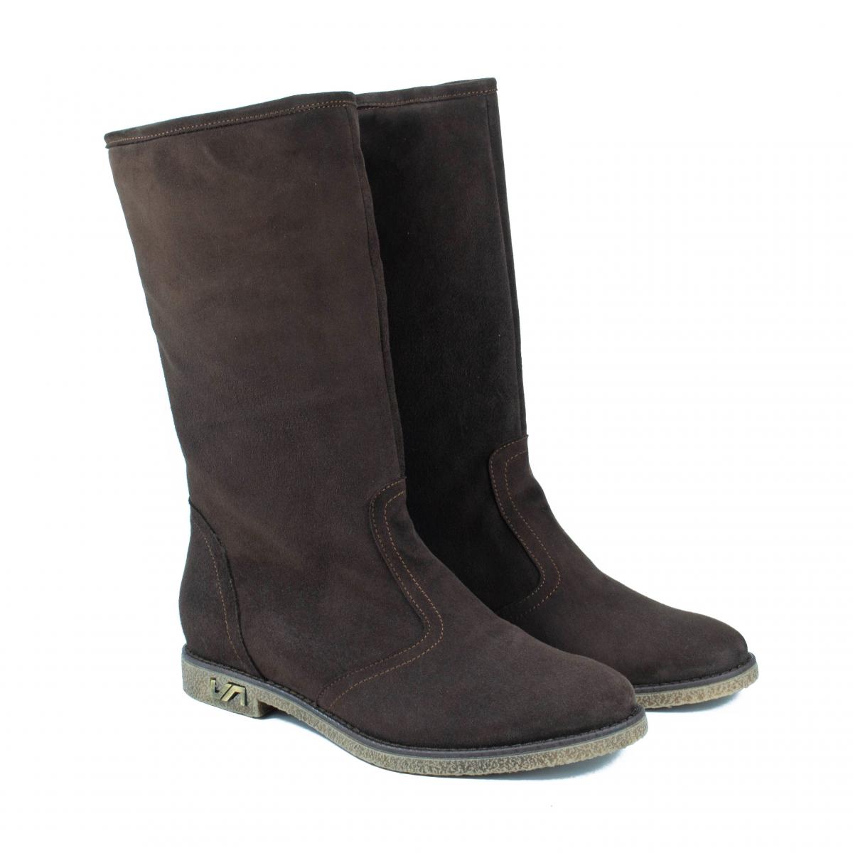 Cizme de dama casual fara inchidere, realizate din piele naturala velur (intoarsa), cu talpa joasa, antiderapanta si captuseala calda, ideale pentru vremea rece si uscata.