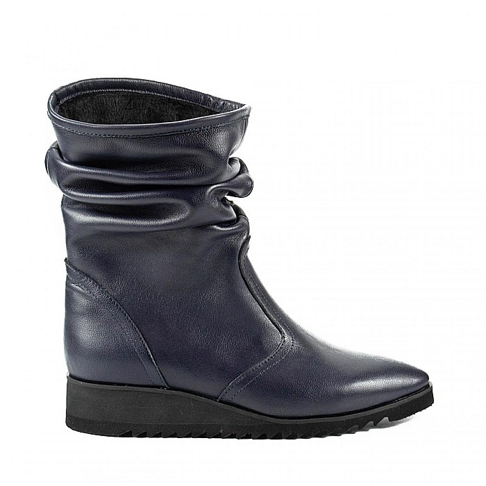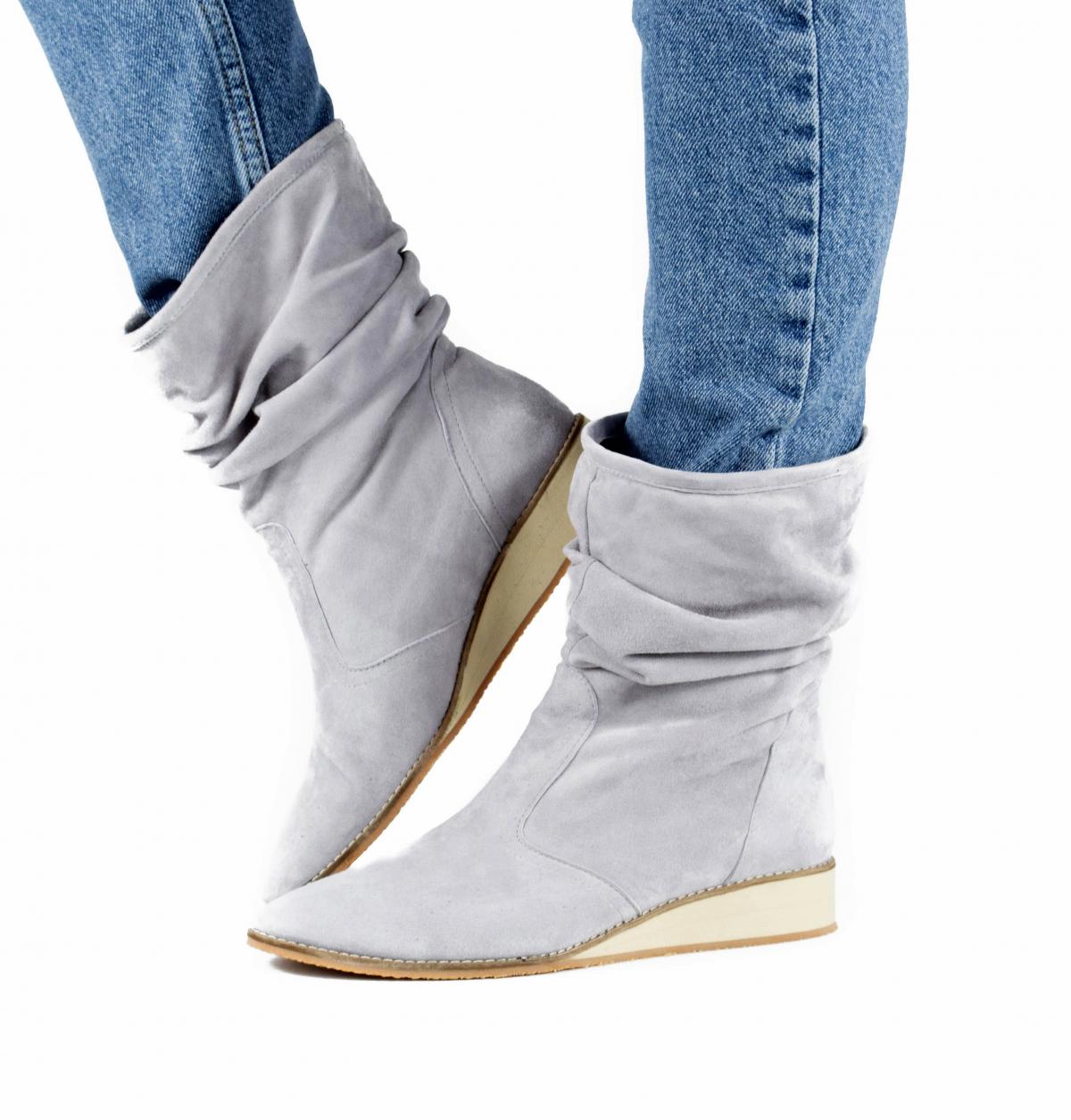 Cizme scurte din piele naturala, fronsate, fara inchidere, cu talpa joasa, ce pot fi purtate la tinute casual, smart-casual, dar nu numai.