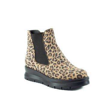 Ghete Chelsea brogue, realizate din piele naturală velur tip animal print, cu talpă joasă, comodă, pentru ținute casual, smart-casual în zilele friguroase și uscate.