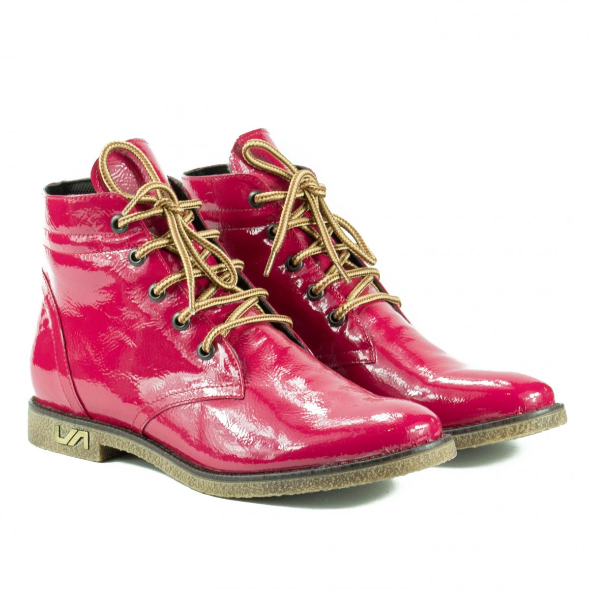 Ghete de dama casual roz-cyclam realizate din piele naturala lucioasa, cu talpa joasa, comoda, potrivite pentru zilele cu temperaturi scazute.