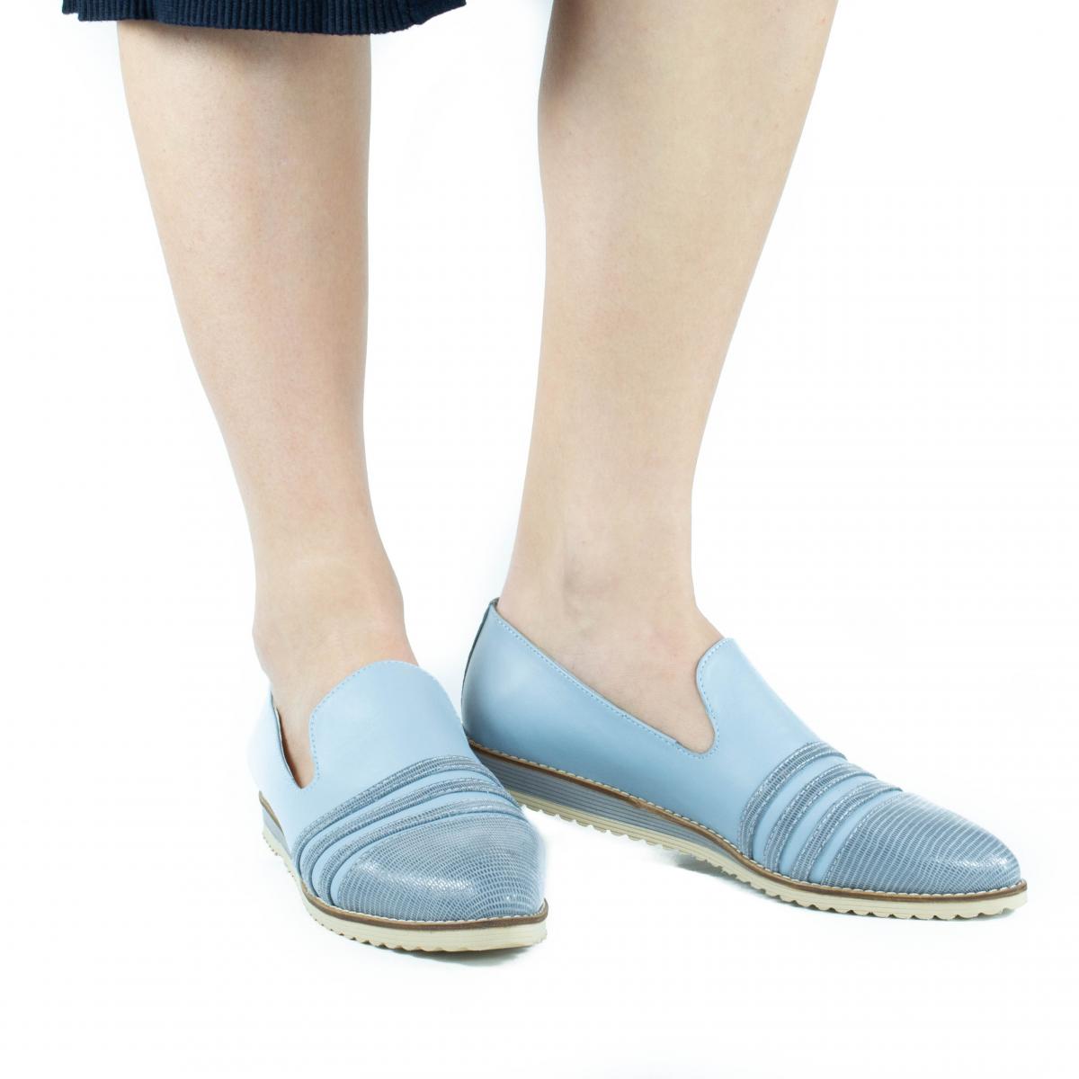 Pantofi casual din piele naturala bleu, de inalta calitate, extrem de usori si confortabili, potriviti pentru tinute casual, smart-casual sau office.