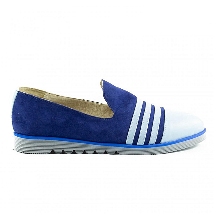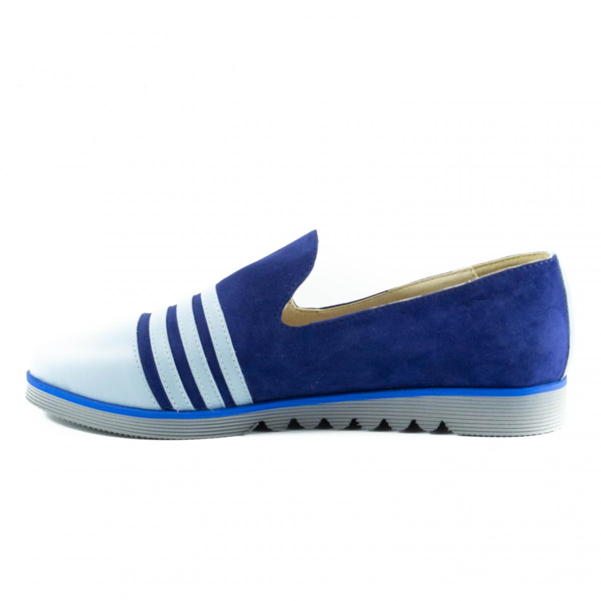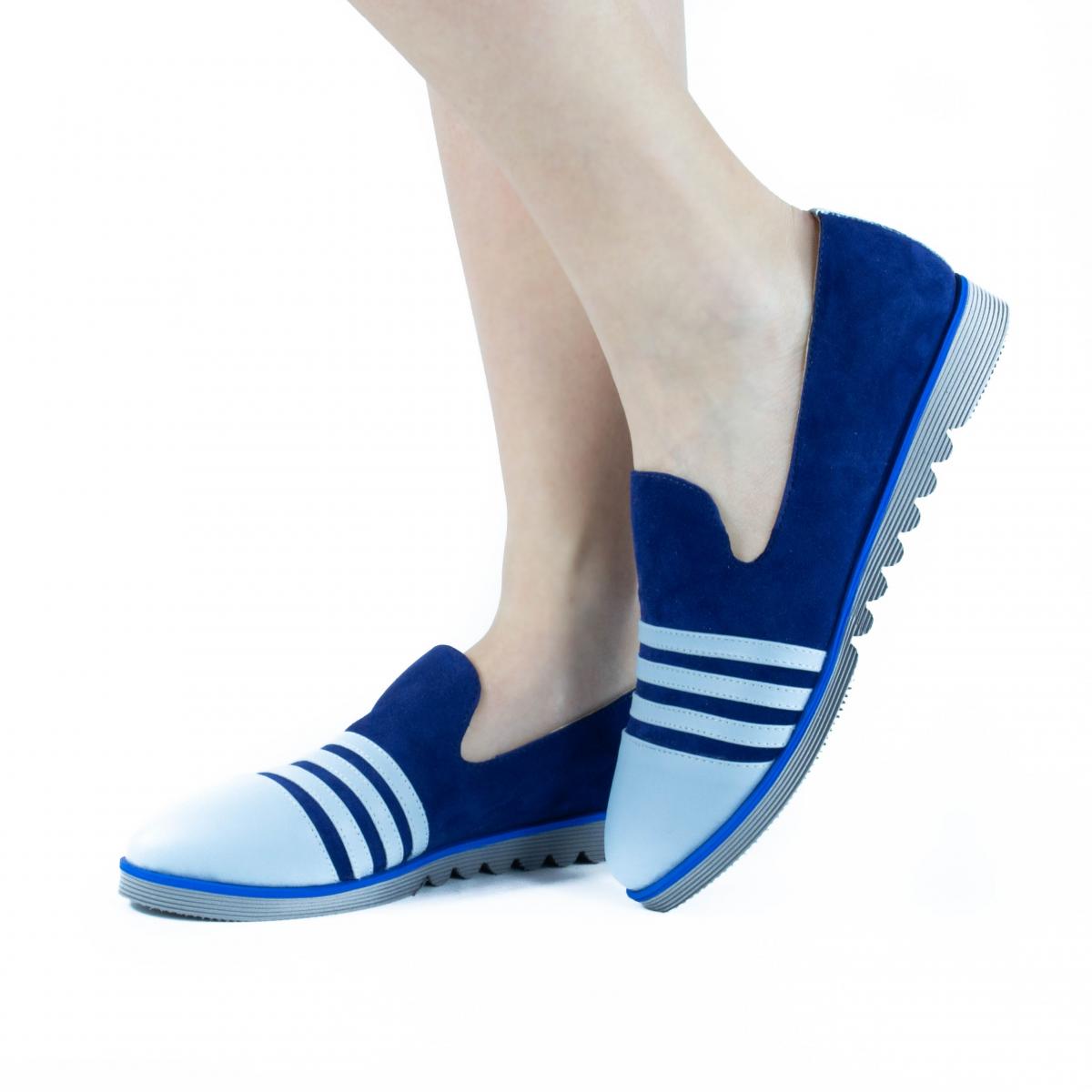 Sunt realizati din piele box bleu, combinata cu piele velur albastru royal.