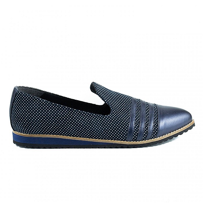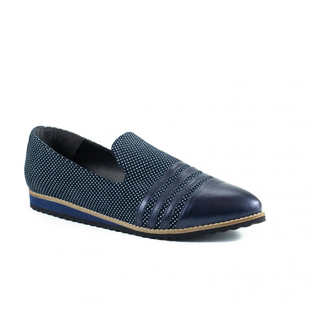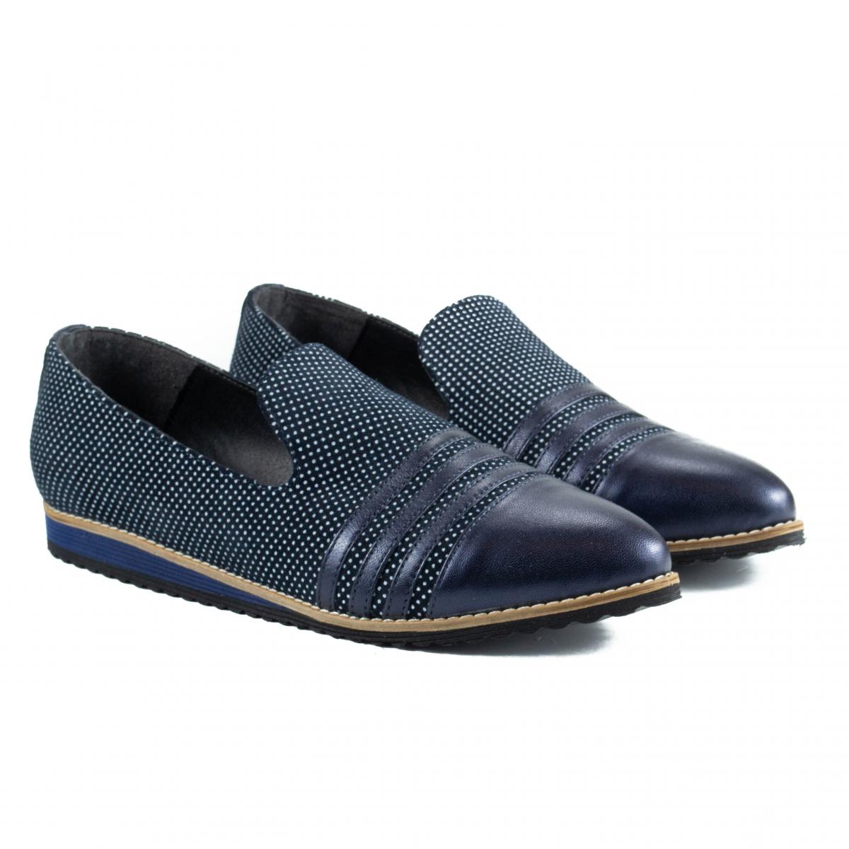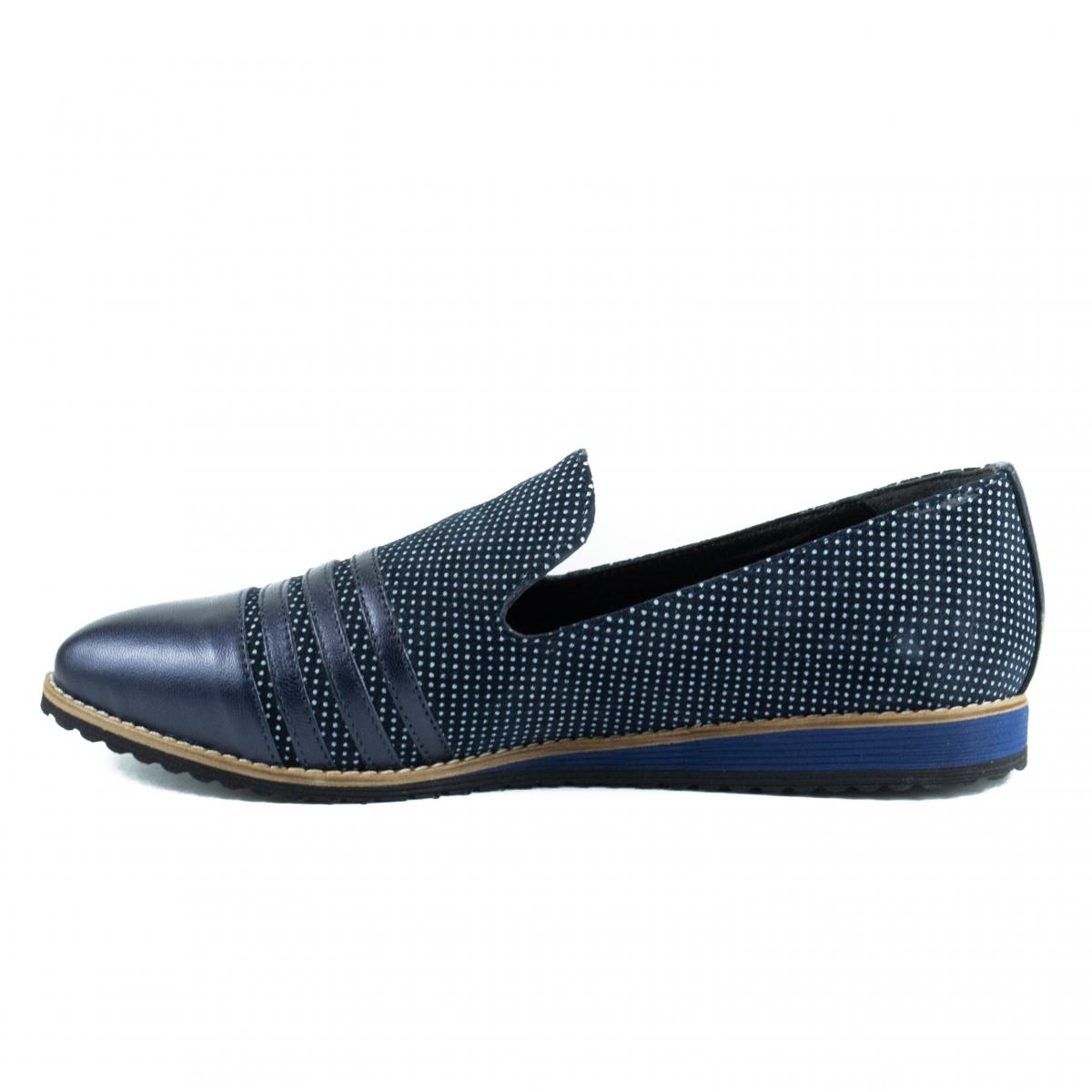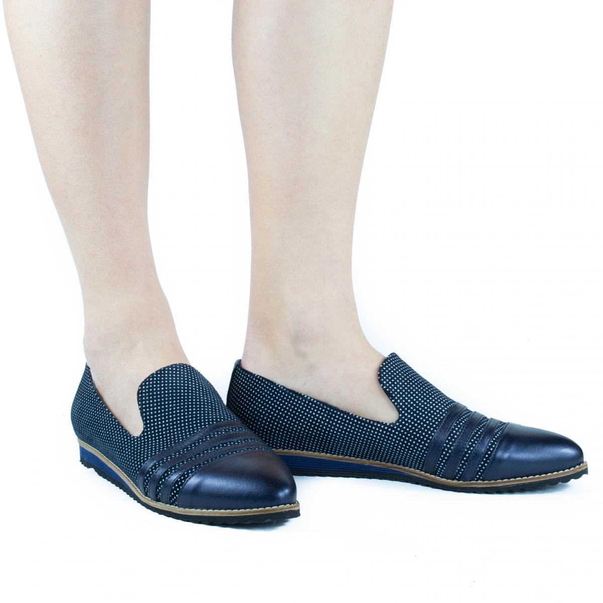 Sunt realizati din piele box bleumarin combinata cu piele texturata model cu buline.