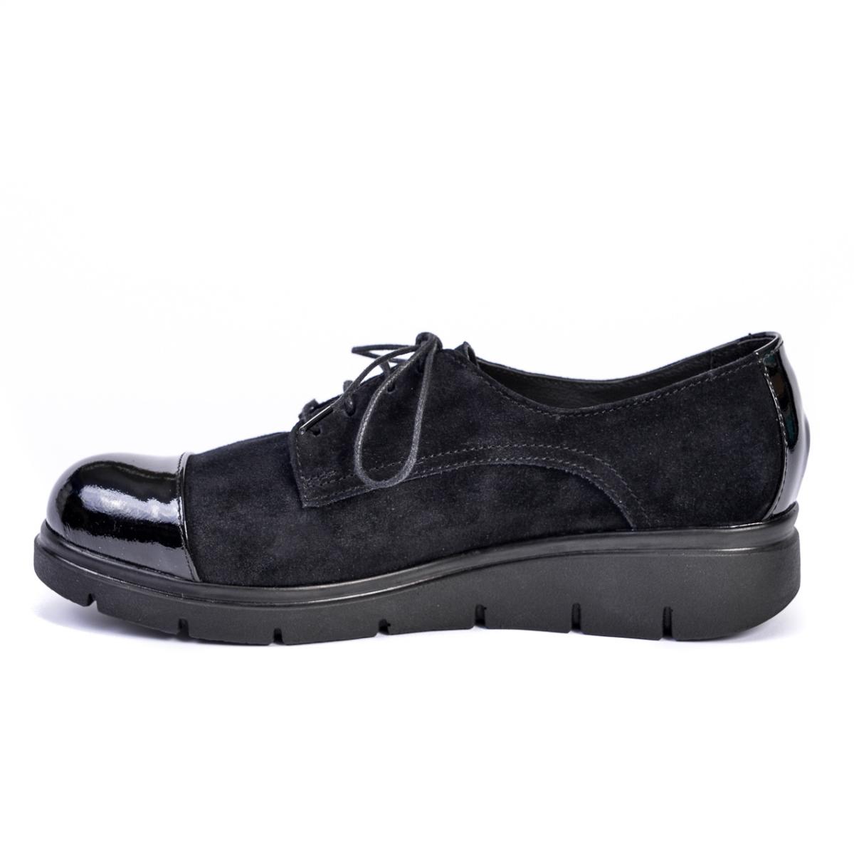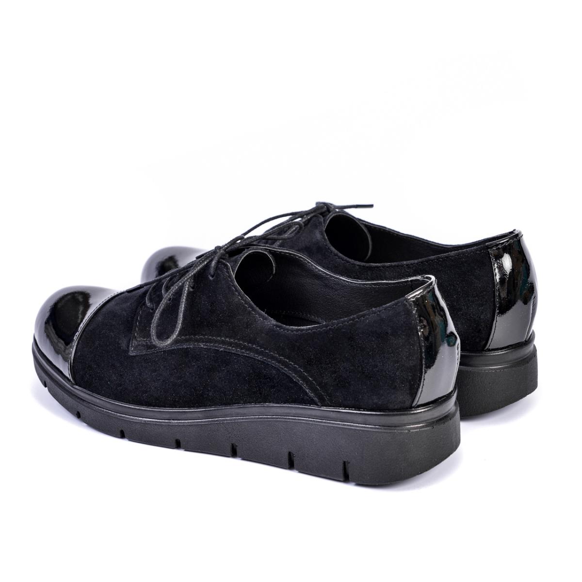 Pantofi tip Oxford din piele naturală velur cu vârful din piele lăcuită, comozi, cu talpă ușoară și flexibilă, ce pot fi purtați împreună cu ținute casual, smart-casual sau office.
