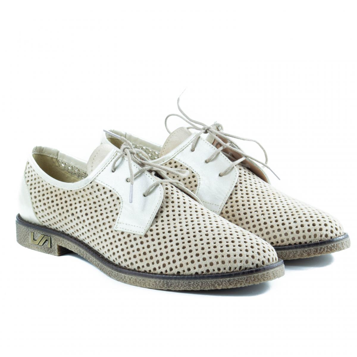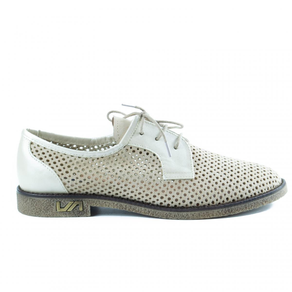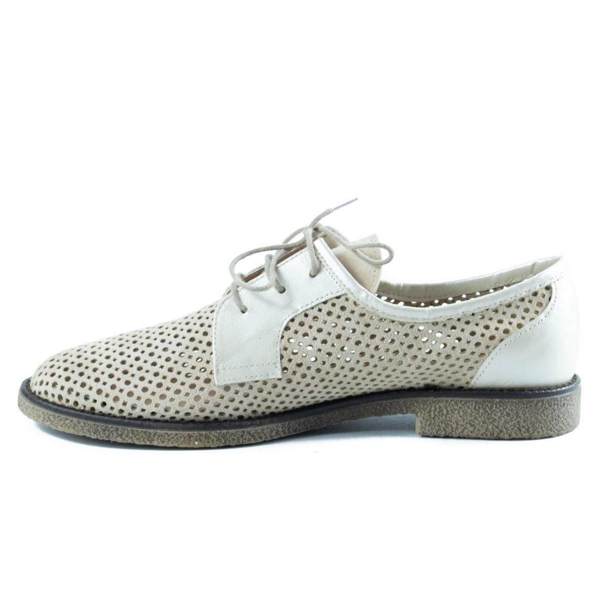 Pantofi tip Oxford din piele naturala de inalta calitate, partial perforata, crem, cu talpa usoara si flexibila, ce pot fi purtati impreuna cu tinute casual, smart-casual sau office.