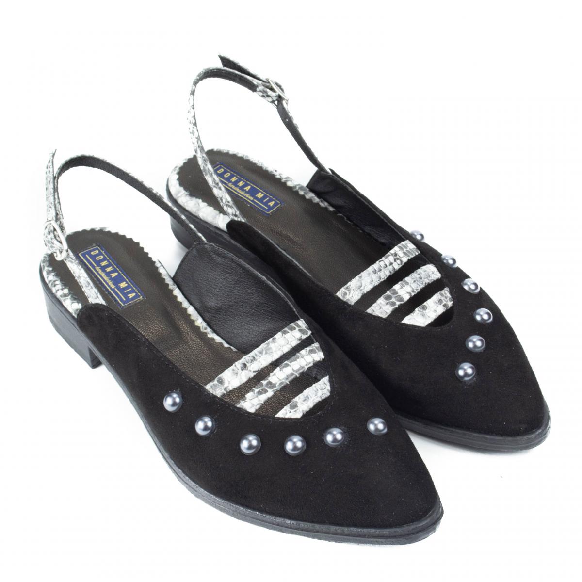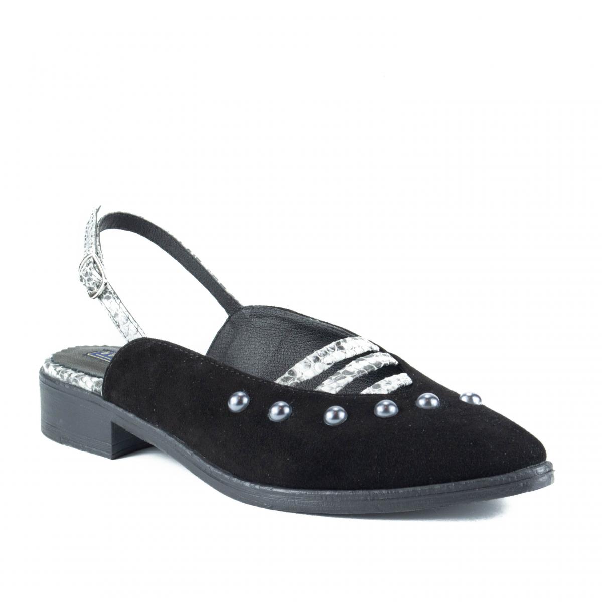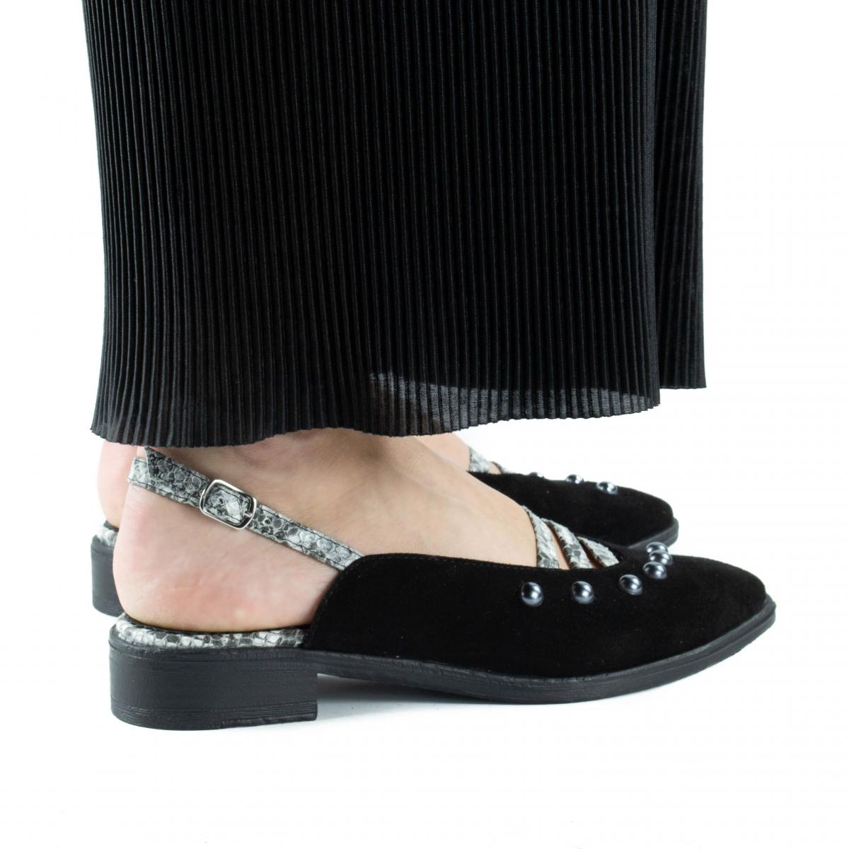 Pantofi slingback din piele naturala velur combinata cu piele naturala tip reptila, de foarte buna calitate, cu design italienesc, pe care ii poti potrivi atat cu tinute office, cat si cu cele smart-casual.