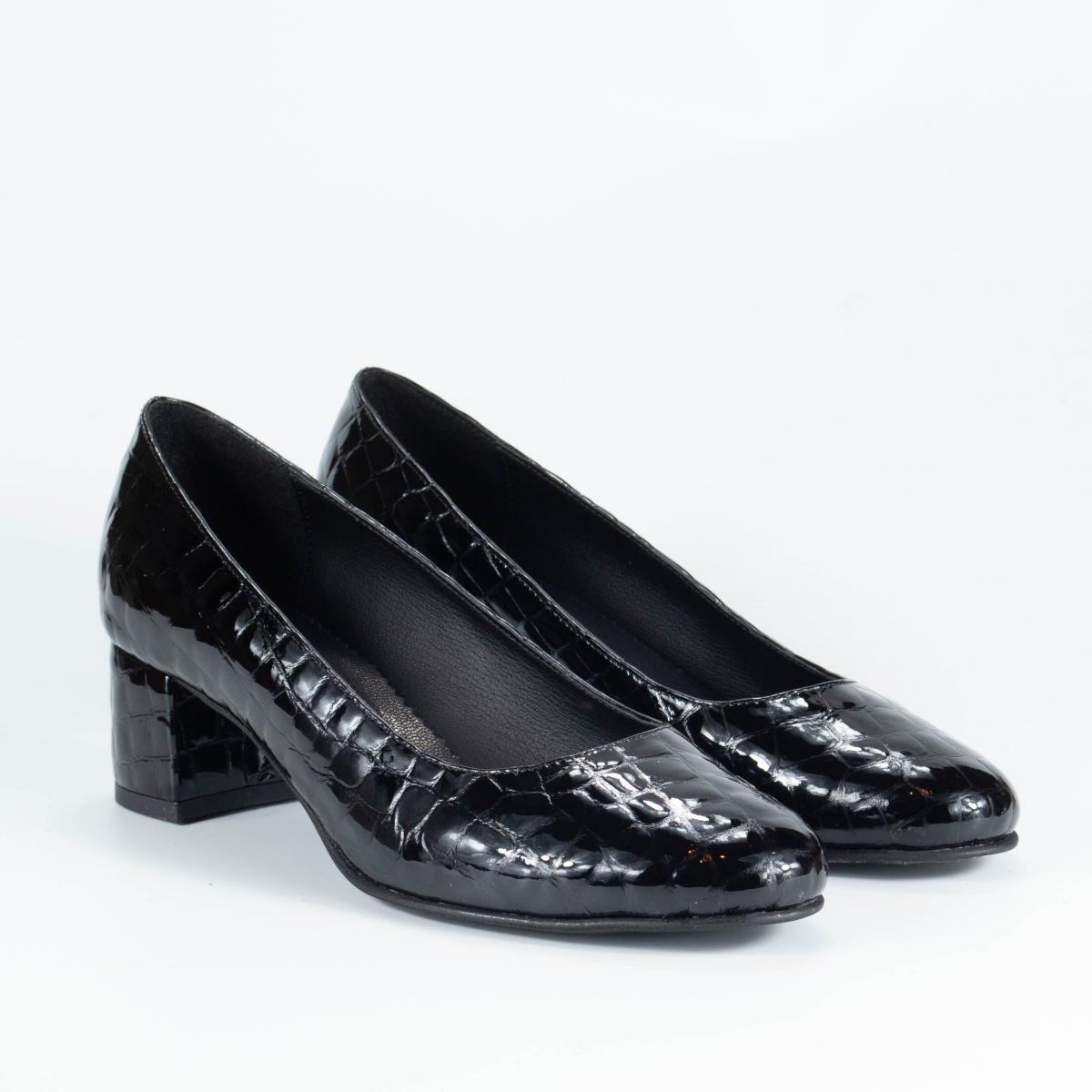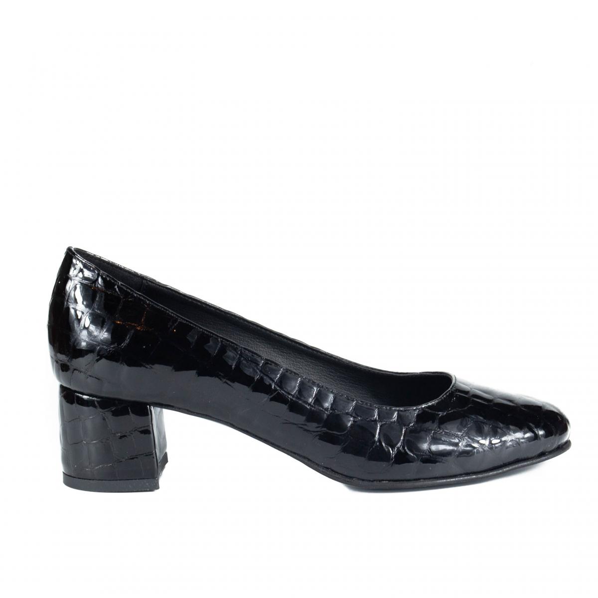 Pantofi clasici croco, din piele naturala, cu toc imbracat in piele, ce pot fi purtati impreuna cu tinute elegante sau office.