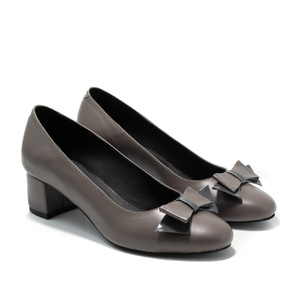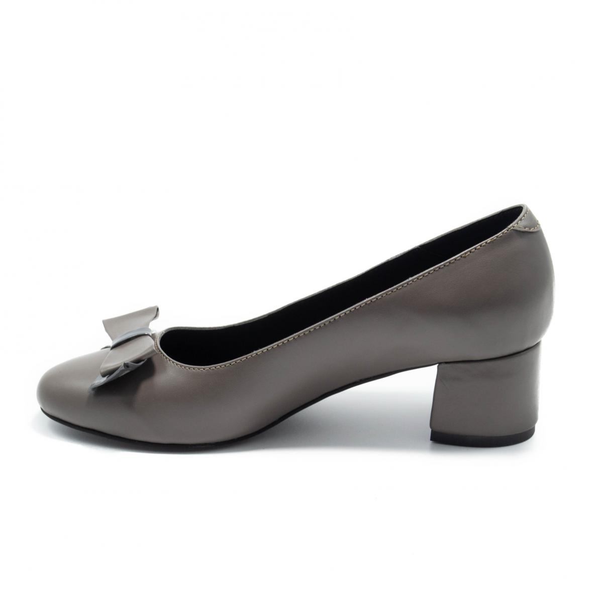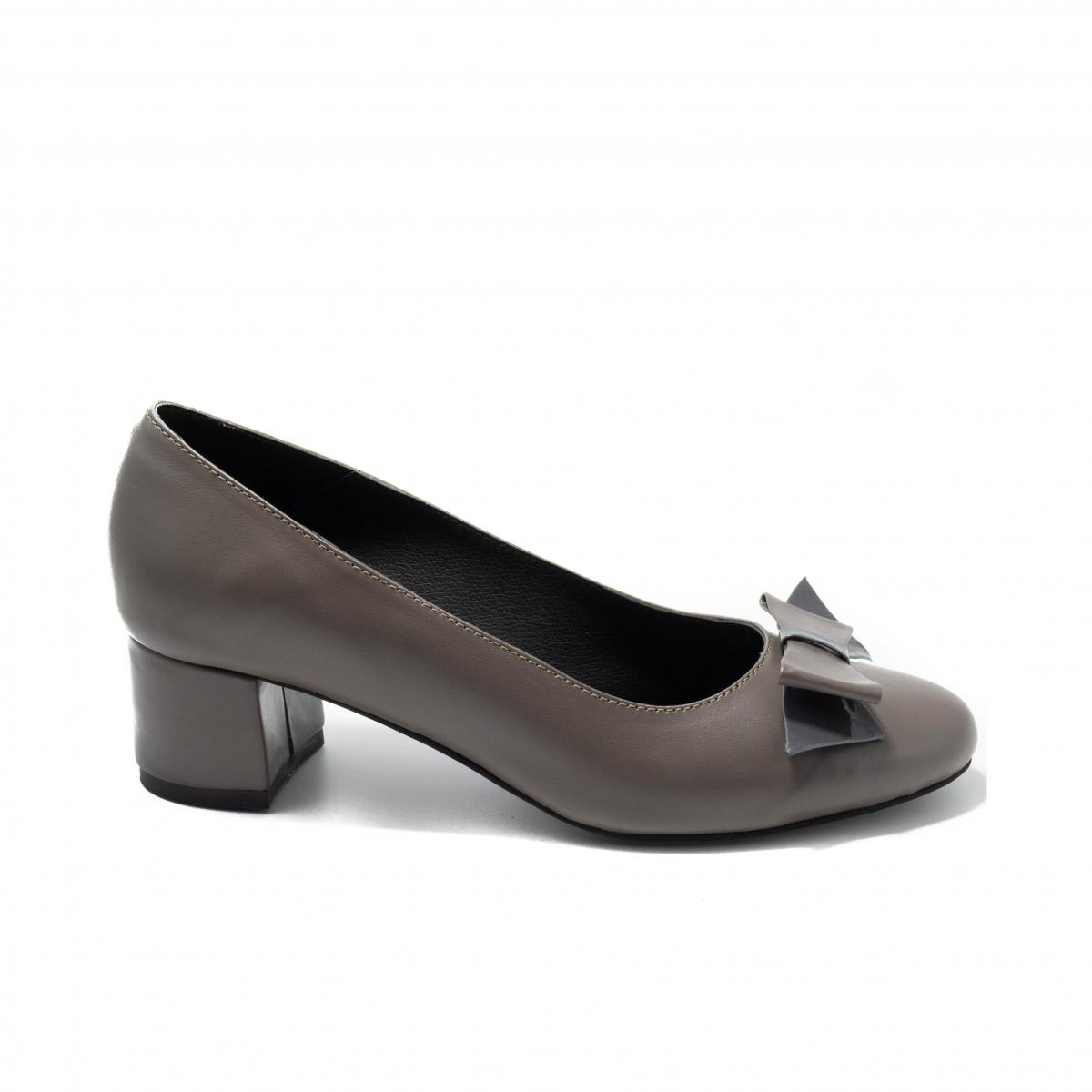 Pantofi clasici cu fundiță, din piele naturală, cu toc îmbrăcat în piele, ce pot fi purtați împreună cu ținute elegante sau office.