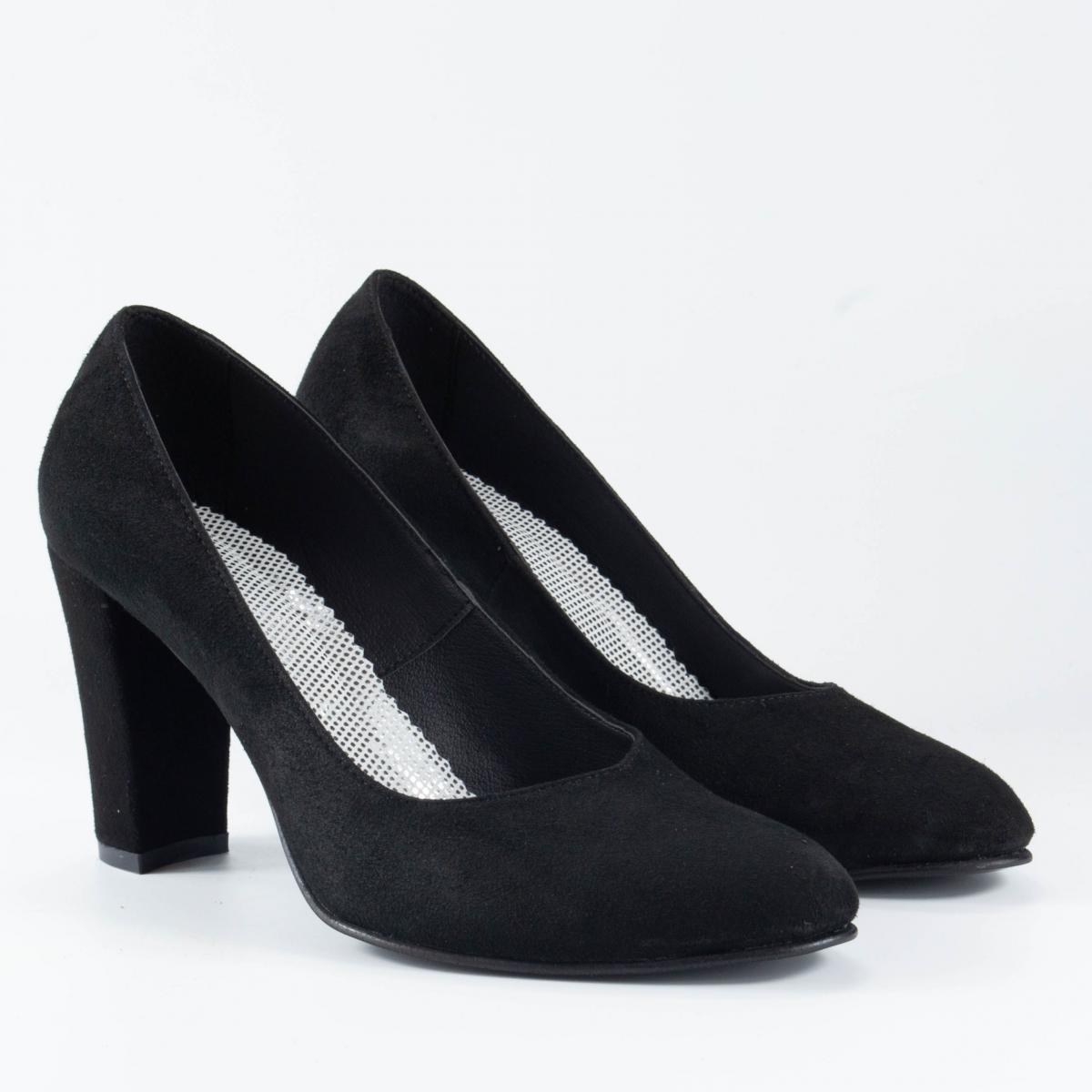 Pantofi pumps din piele naturală velur, comozi, ce pot fi purtați împreună cu ținute office sau casual, dar și cu ținute elegante.