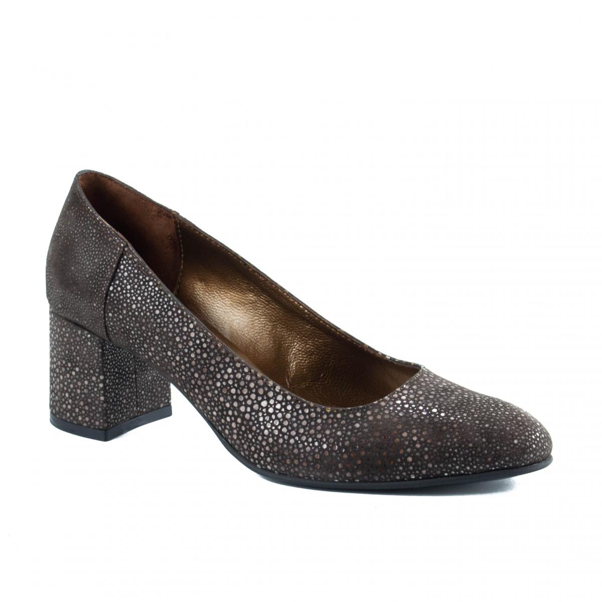 Pantofi pumps din piele naturala maro texturata, de inalta calitate, foarte comozi, ce pot fi purtati impreuna cu tinute smart-casual, office sau de ocazie.