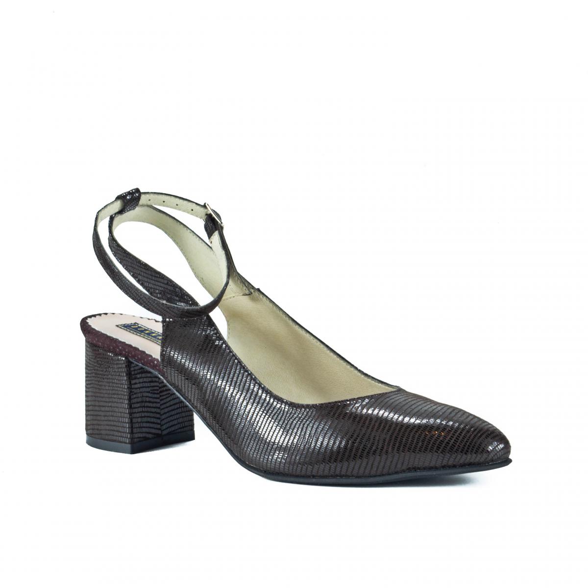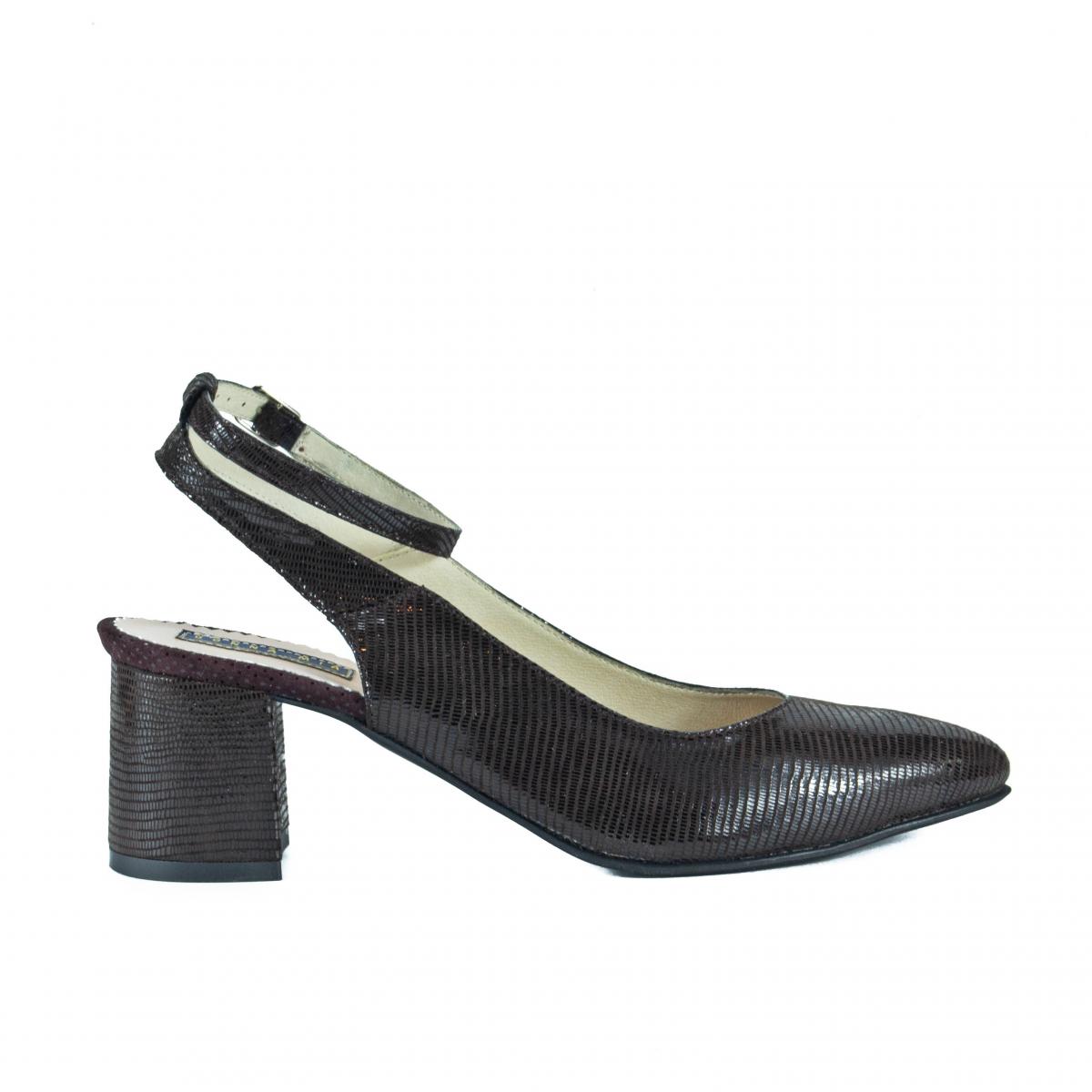 Pantofi pumps din piele naturala texturata de nuanta wenge, foarte comozi, ce pot fi purtati impreuna cu tinute casual, smart-casual sau office.