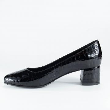 Pantofi clasici croco, din piele naturala, cu toc imbracat in piele, ce pot fi purtati impreuna cu tinute elegante sau office.