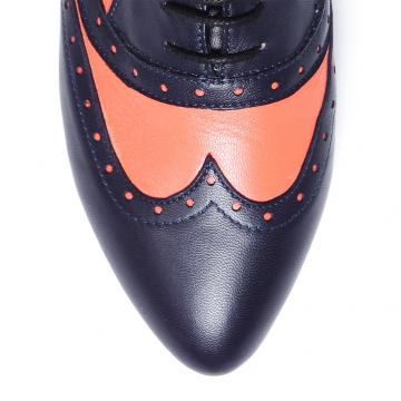 Pantofi de damă tip Oxford, din piele naturală în două culori și design retro cu perforații, comozi, ce pot fi purtați împreună cu ținute casual, smart-casual sau office.