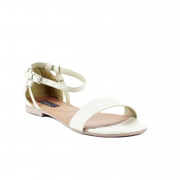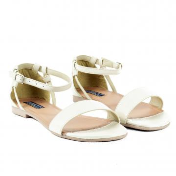 Sandale flat din piele naturala alba, foarte confortabile, cu bareta peste glezna, ce pot fi purtate la tinute casual, smart-casual, dar nu numai.