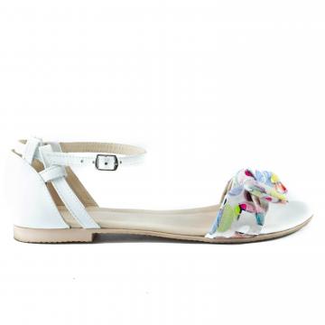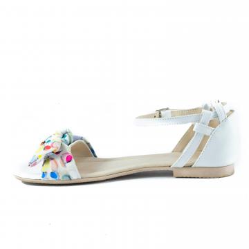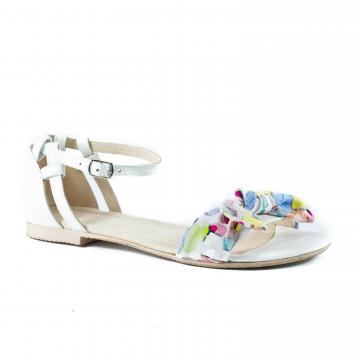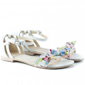Sandale flat din piele naturala accesorizate cu fundita multicolora, foarte confortabile, ce pot fi purtate la tinute casual, smart-casual, dar nu numai.