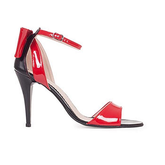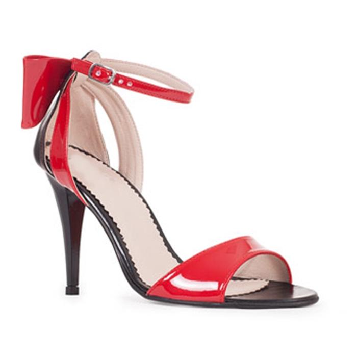 Sandale elegante din piele naturală, cu toc subțire și fundiță la spate.
