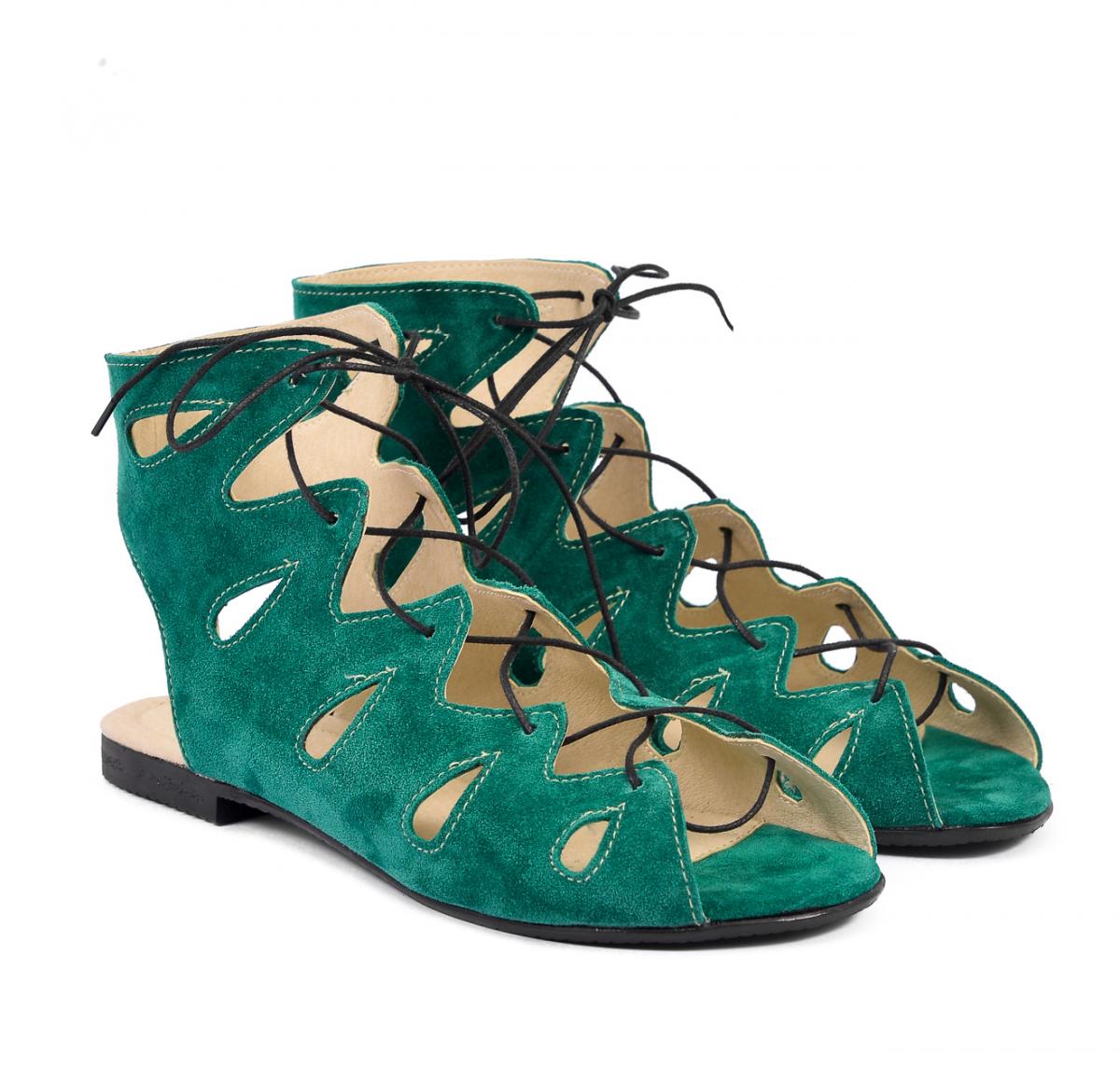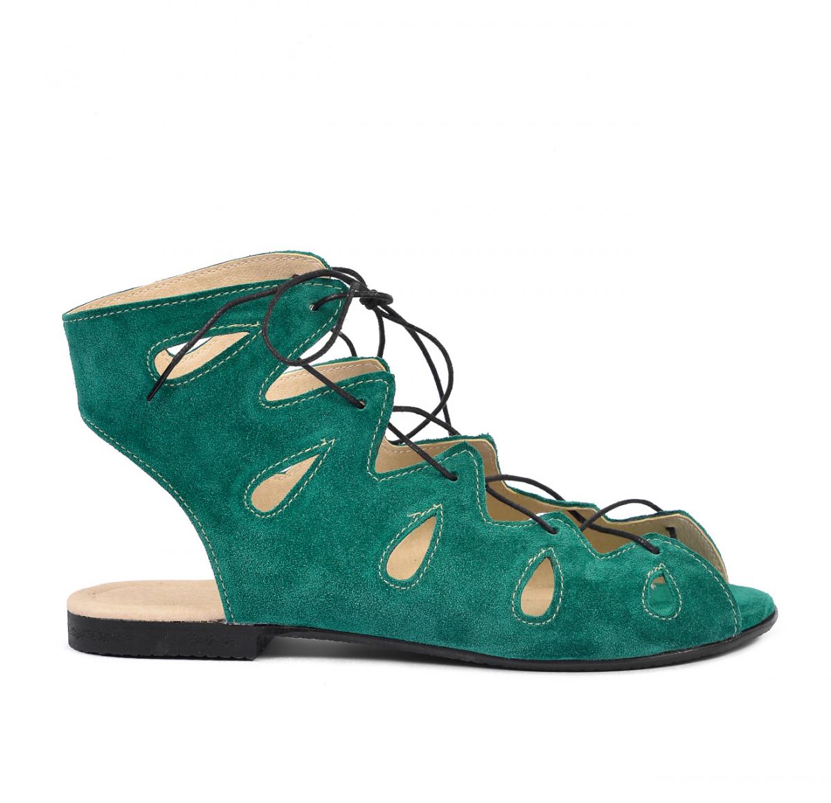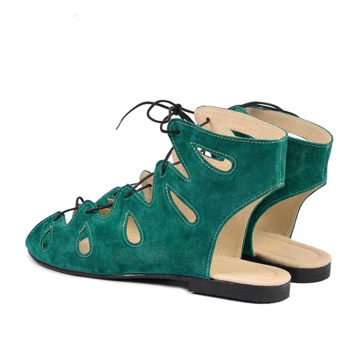 Sandale flat tip gladiator din piele naturala velur, foarte confortabile, ce pot fi purtate la tinute casual sau smart-casual.